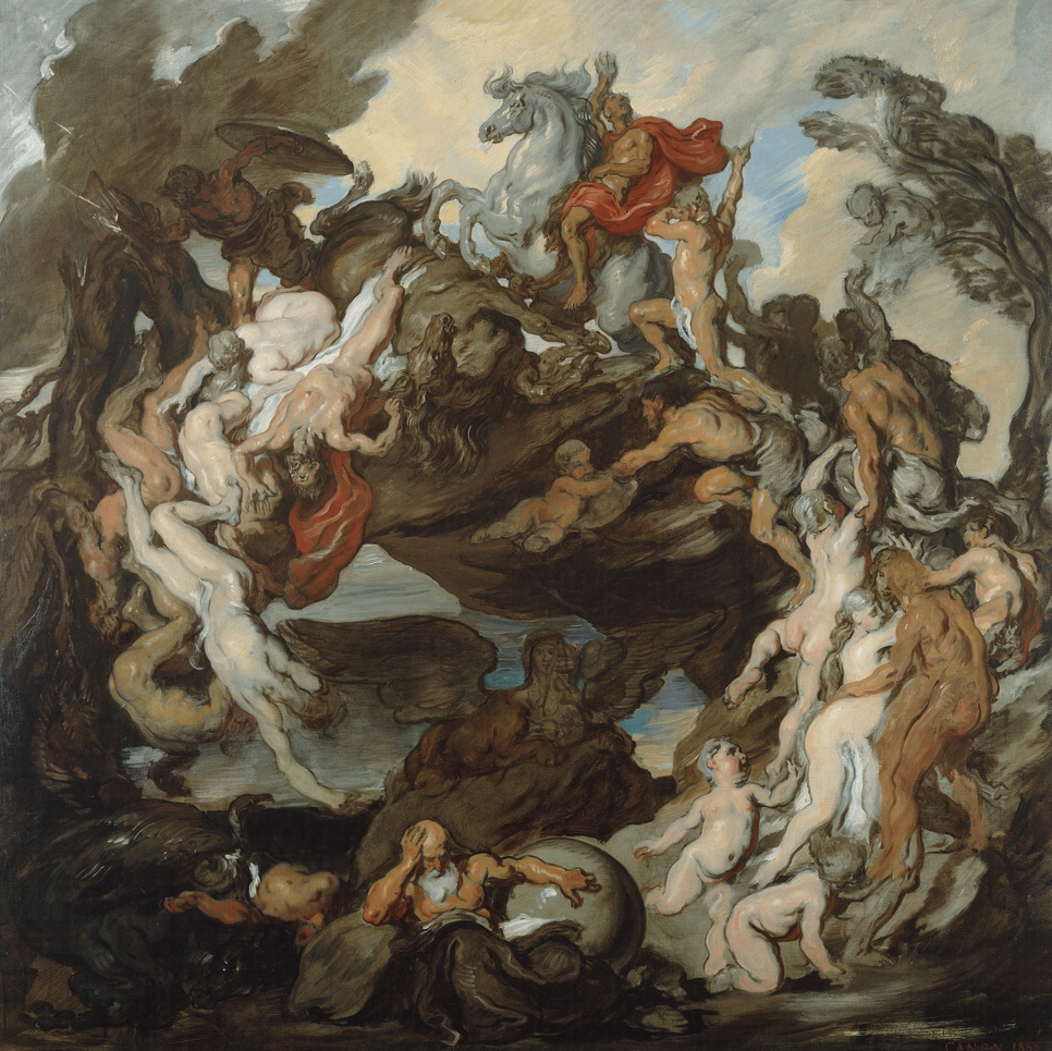 From 1883 onward, Hans Canon began working on his first concept for the grand staircase of the Natural History Museum – a depiction of The Lion Hunt. The design, however, was rejected, and in 1885 Canon embarked instead on The Cycle of Life. Leaning against a sphere—symbol throughout the ages of Earth, cosmos, or infinity – a philosopher at the lower edge of the composition ponders the meaning of existence. Above him, the Sphinx presides as guardian of the secret of time. The cycle itself narrates essential stages of human existence: defeat and triumph, striving and falling, love and death. Canon’s work was installed in the museum’s staircase only after his death.